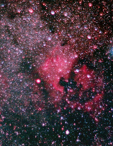 mehrere Quadratgrad erstreckt. Es handelt sich um einen Emissionsnebel in