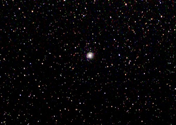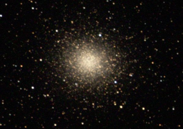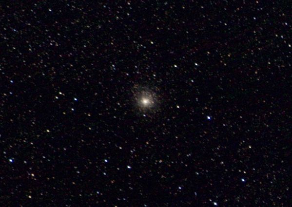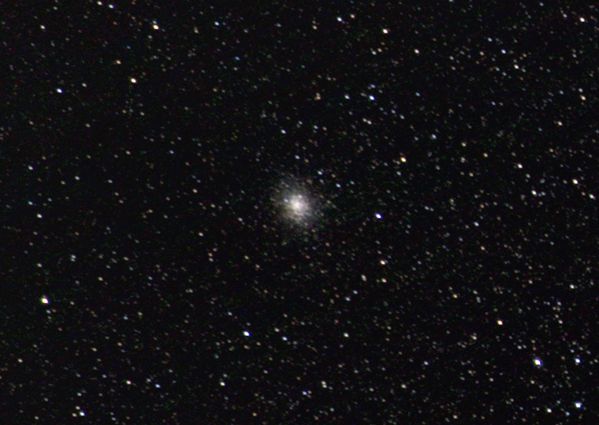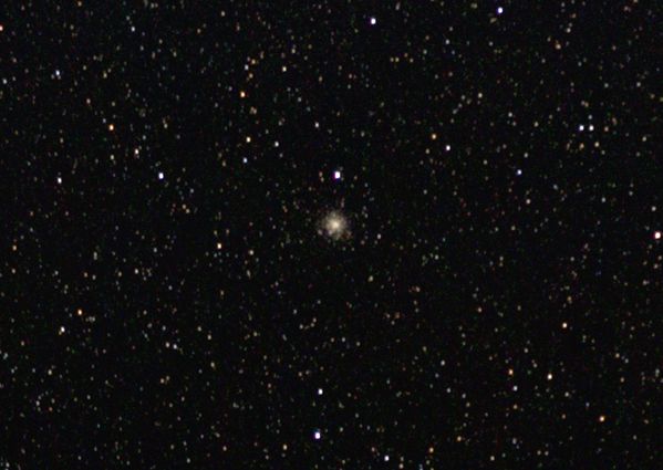 Noch kleiner und unscheinbarer ist der Kugelsternhaufen M 54. Er hat eine Ausdehnung von nur 12 Bogenminuten und ist nur etwa 8m hell. Kein Wunder, ist er doch 87 400 ly entfernt. Im Bild ist kaum erkennbar, dass es sich um einen Kugelsternhaufen handelt.