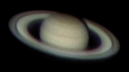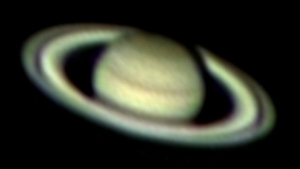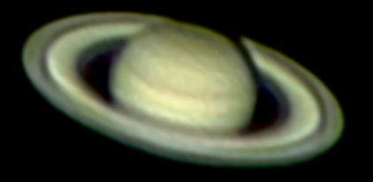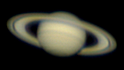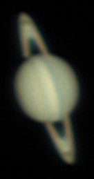 Noch ein paar Bogenminuten tiefer als im letzten Jahr ist es weiterhin schwierig, Saturn aufzunehmen. Auch eine mehrtägige Selektion und Bearbeitung der Aufnahmen mit Giotto, Fitswork und Grafikbearbeitungsprogrammen brachte keine wesentliche Verbesserung. |