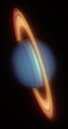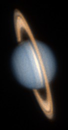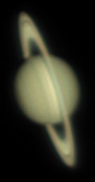 Die folgenden Bilder des Saturn entstanden im Abstand von jeweils ungefähr einem Jahr. Weitere sollen in den nächsten Jahren folgen. Sie zeigen wie sich die Neigung der Ringe während der Bewegung um die Sonne ändert. Der Saturn braucht für einen Umlauf um die Sonne fast 30 Jahre. Die Rotationsachse des Saturn ist gegenüber der Bahnebene um fast 27° geneigt. Die Folge ist, dass wir die Ringe je nach der Position des Saturn auf seiner Bahn in einem unterschiedlichen Winkel sehen. 1995 konnten wir die Saturnringe in kleineren Fernrohren zeitweise überhaupt nicht erkennen, da sie parallel zu unserer Blickrichtung lagen. Inzwischen wird der Öffnungswinkel der Saturnringe wieder kleiner. In Kürze sind sie dann wieder nur von der "Kante" zu sehen. Ich werde versuchen, einen vollständigen Umlauf des Saturn zu dokumentieren. Hier schon mal ein Teilergebnis: