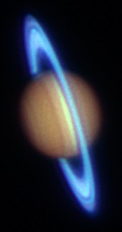 Die beiden Bilder von 2001 und 2002 entstanden im Abstand von etwa 4 Monaten - jeweils vor und nach der Opposition. Am Schatten des Saturnkörpers auf dem Ring kann man die veränderte Lage gegenüber Sonne und Erde erkennen. Vor der Opposition erscheint der Schatten links, danach rechts hinten auf dem Ring.