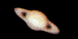 Saturn ist mit bloßem Auge als heller Punkt am Himmel zu sehen. Die Ringe werden aber erst in einem Fernrohr mit mindestens 30facher Vergrößerung als kleine "Beulen" sichtbar. Um Einzelheiten auszumachen sollte die Vergrößerung auf jeden Fall über 100-fach betragen. |