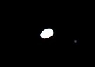 Inzwischen gelang es mir nun auch den Saturnmond Titan fotografisch festzuhalten. Der Saturn selbst ist auf der Aufnahme natürlich stark überbelichtet und erscheint deshalb nur als weißer Fleck. Es handelt sich hier wieder um ein Komposit mehrerer Einzelbilder einer Aufnahme mit der Hi8 - Kamera, das außerdem stark kontrastverstärkt wurde. |