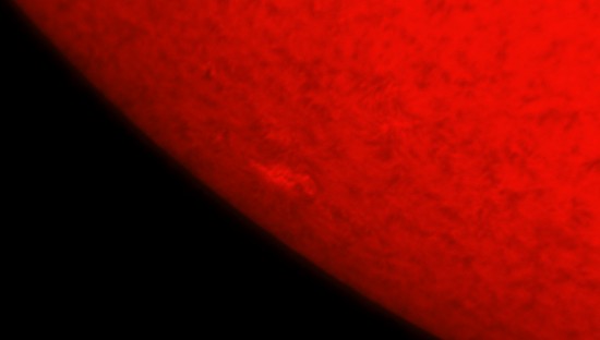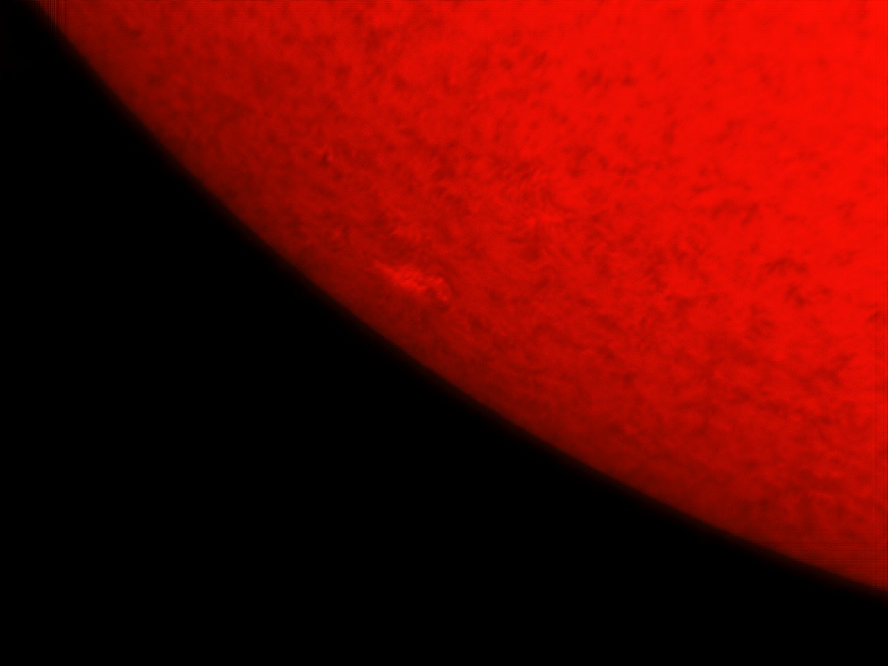 Hier sah ich eine Stelle auf der Sonnenoberfläche, die sich in der Helligkeit vom Rest unterscheidet. Möglicherweise handelt es sich ja um ein Fackelgebiet. |