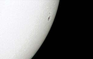 Eine Sonnenfinsternis kann man ohne optische Hilfsmittel beobachten - nur eine spezieller Filter um die Augen zu schützen ist nötig. In seltenen Fällen kann man so auch Sonnenflecken, die besonders groß sind erkennen. Meist ist für diese Beobachtungen aber ein Fernrohr mit Sonnenfilter nötig. Während eines Sonnenaktivitätsmaximums, was sich in einem Zyklus von 11 Jahren wiederholt, kann man besonders viele Sonnenflecken beobachten. Das nächste Maximum wird im Jahr 2011 erwartet. Sonnenflecken erscheinen uns als dunkle Flecken, weil sie gegenüber der bis zu 6000°C heißen Sonnenoberfläche um etwa 2000 Grad kühler sind. Ihre Entstehung hängt ab von der Veränderung der Magnetfelder auf der Sonne. Während eines Sonnenaktivitätsmaximums gibt es auch besonders viele Protuberanzen - Strahlungs- und Materieausbrüche auf der Sonne, die viele Millionen Kilometer in den Raum hinausreichen können. Ihre Auswirkungen erreichen auch die Erde, erzeugen Polarlichter und stören den Funkverkehr. |