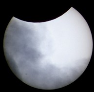 Während dieser Finsternis habe ich alle 2 Minuten ein Bild aufgenommen um daraus wieder einen kleinen Film zusammenzustellen. Leider fehlen einzelne Bilder wegen der Wolken. Die Bewegung des Mondes vor der Sonnenscheibe ist trotzdem gut erkennbar.