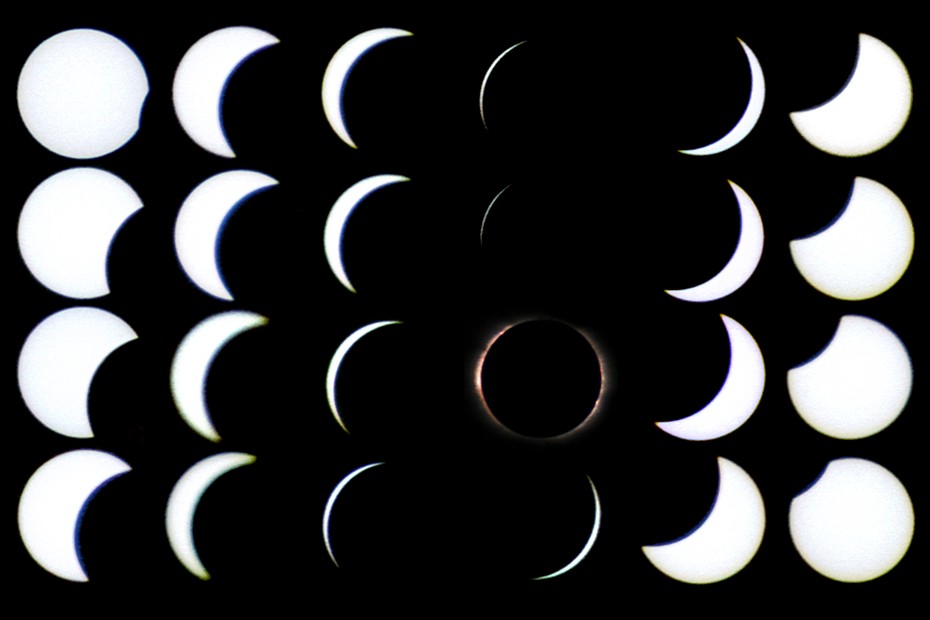 Es ist schwierig, die Korona in ihrer gesamten Ausdehnung aufzunehmen, da ihre Helligkeit von innen nach außen sehr stark abnimmt. Um Strukturen in der Korona sichtbar zu machen, habe ich daher mehrere Bilder mit unterschiedlichen Belichtungszeiten zu einem Komposit zusammengefügt. |