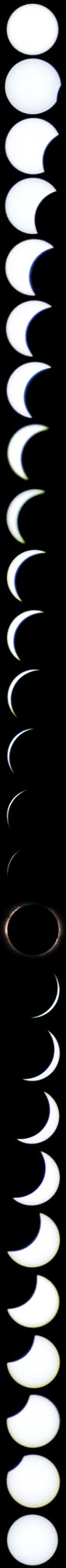 Für einen weiteren Zeitrafferfilm standen nun genügend Aufnahmen zur Verfügung. Da diese nicht immer im gleichen zeitlichen Abstand aufgenommen wurden, schwankt die Geschwindigkeit etwas. Außerdem habe ich den Zeitraum der Totalität stark gedehnt, da er sonst im Film kaum wahrnehmbar wäre.