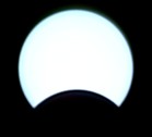 Kurz vor Beginn der Totalität (12:26) wird der "Diamantring" sichtbar. Die Sonne ist fast vollständig verdeckt und die schmale Sonnensichel leuchtet nur noch an einer Stelle hervor. Dabei wird die Korona bereits sichtbar. |