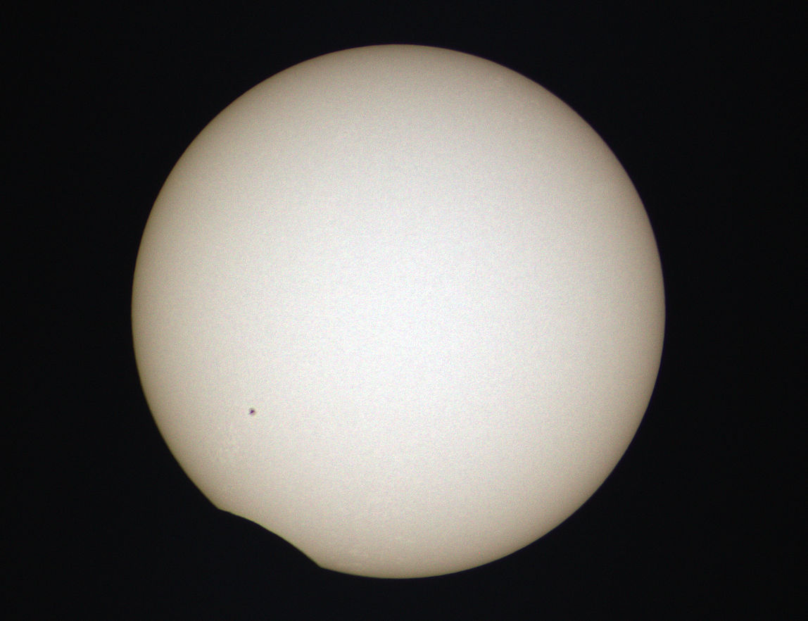 Aufnahmen durch 63/840 mm Refraktor mit Canon EOS 1100Da, 1/320s Belichtungszeit mit Sonnenfilter |