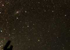 Einen wirklich dunklen Himmel und die Kenntnis der Sternbilder erfordert es, wenn man mehr erkennen möchte. Im Sternbild Andromeda findet man einen kleinen Nebelfleck, die Andromedagalaxie. Auch den Orionnebel kann man im Winter erkennen. Sogar den Kugelsternhaufen M13 im Sternbild Herkules sieht man als kleines nebliges Objekt und natürlich viele offene Sternhaufen. In der Milchstraße, die uns als eigene Galaxie umgibt, kann man schon verschiedene Strukturen erkennen. Irgendwann, in nicht allzu ferner Zukunft werden wir auch wieder das Glück haben, einen hellen Kometen zu sehen. |