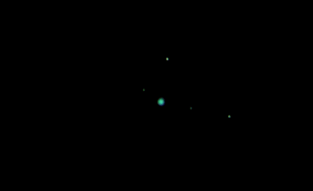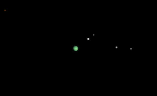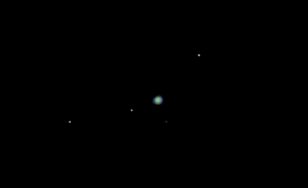 Da der Versuch, Neptun auf die gleiche Weise zu filmen wegen seiner geringen Helligkeit misslang, schaltete ich die Videokamera diesmal auf Nachtsichtmodus. In dieser Einstellung konnte ich auch Uranus stärker vergrößern, ohne dass die Helligkeit zu stark abnahm.