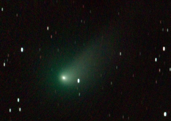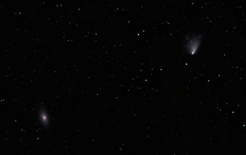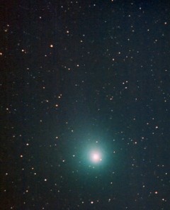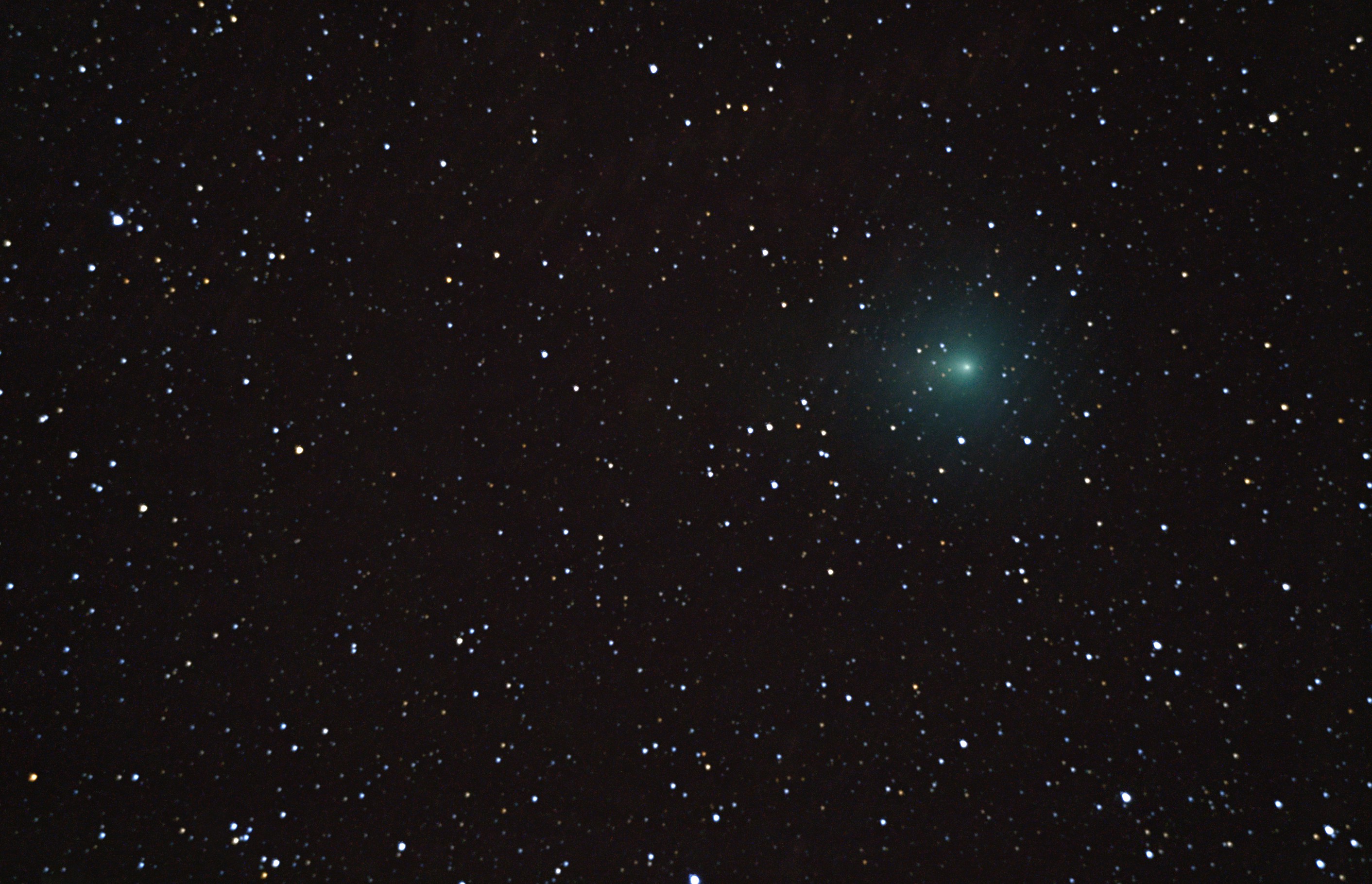 Einen weiteren Versuch, diesen Kometen aufzunehmen, unternahm ich ungefähr einen Monat später. Die Helligkeit hatte sich bis zu diesem Zeitpunkt auf etwa 8m erhöht. Der Schweif ist in dieser Aufnahme allerdings weniger deutlich sichtbar.