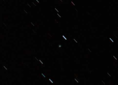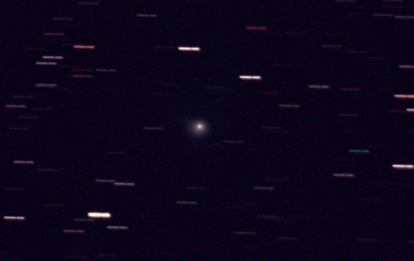 Hier handelt es sich um einen extrem langperiodischen Kometen, oder um einen der uns nur einmal besucht und dann in die Tiefen des Alls entschwindet. Eine Periode ist jedenfalls zu diesem Zeitpunkt noch nicht bekannt. Nachdem ich die Aufnahme des Kometen darüber abbrechen musste, klarte der Himmel nach einigen Stunden wieder auf. Aufgrund seiner günstigen Lage wählte ich nun diesen Kometen als Aufnahmeobjekt. Obwohl seine Helligkeit ebenfalls mit 9,5m angegeben wurde, war der Komet in den Rohbildern auf dem Kameradisplay sofort als kleines Nebelfleckchen erkennbar. Seine Helligkeit könnte in den nächsten Wochen noch um zwei Größenklassen zunehmen.