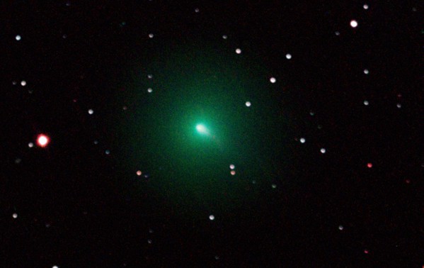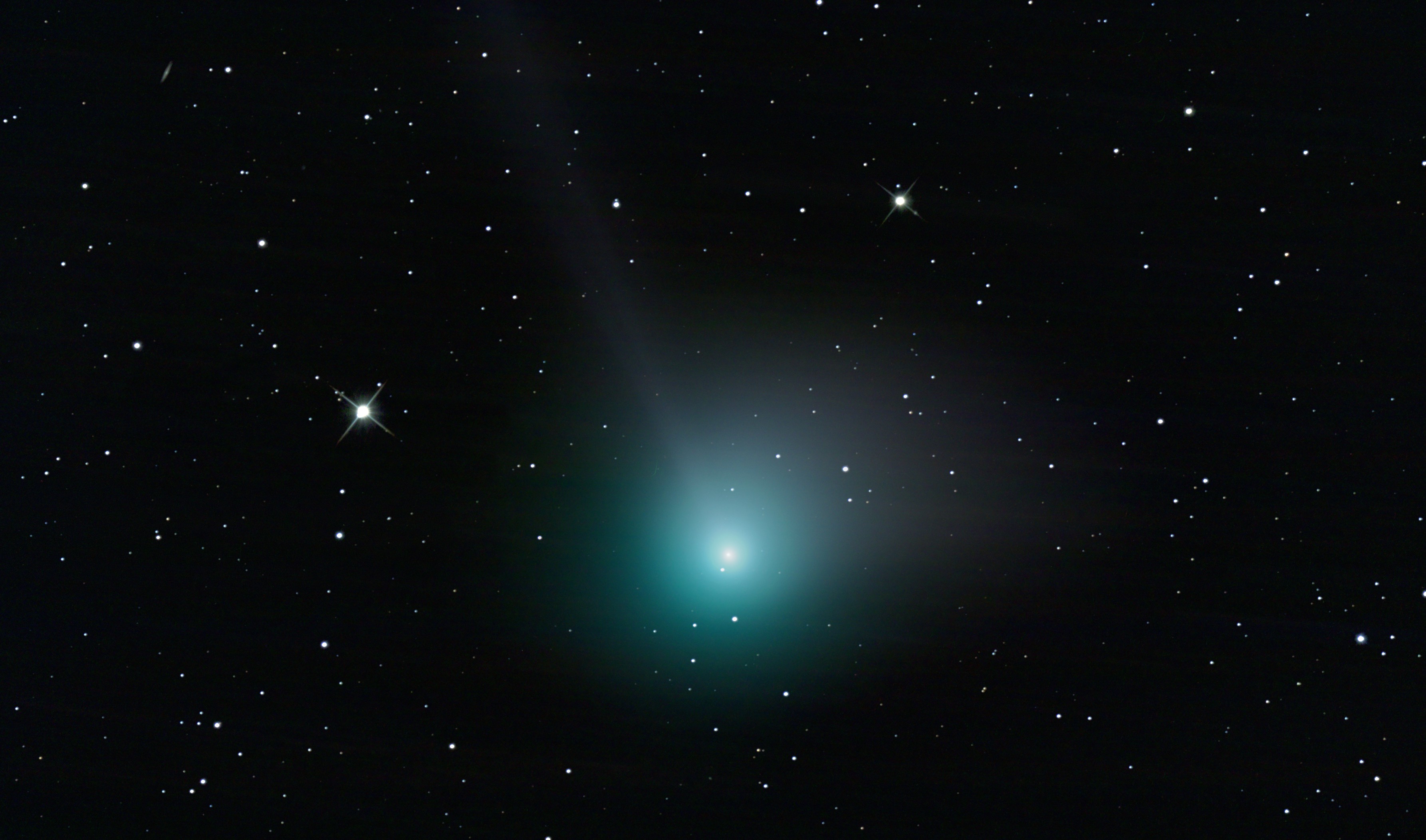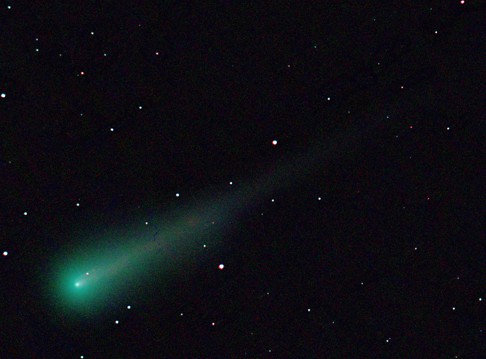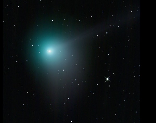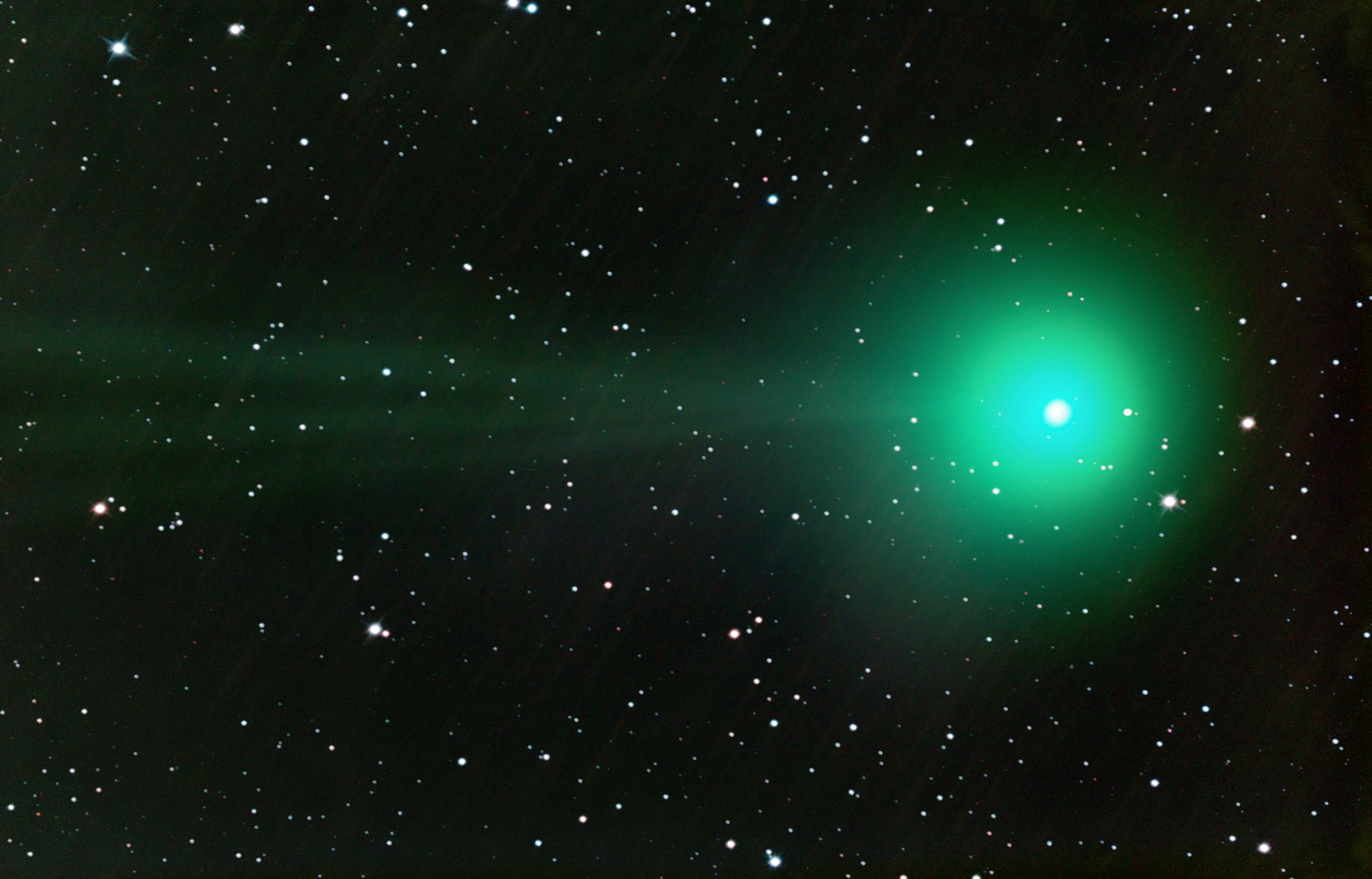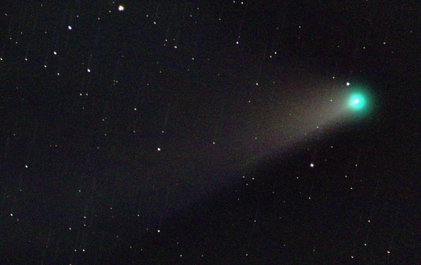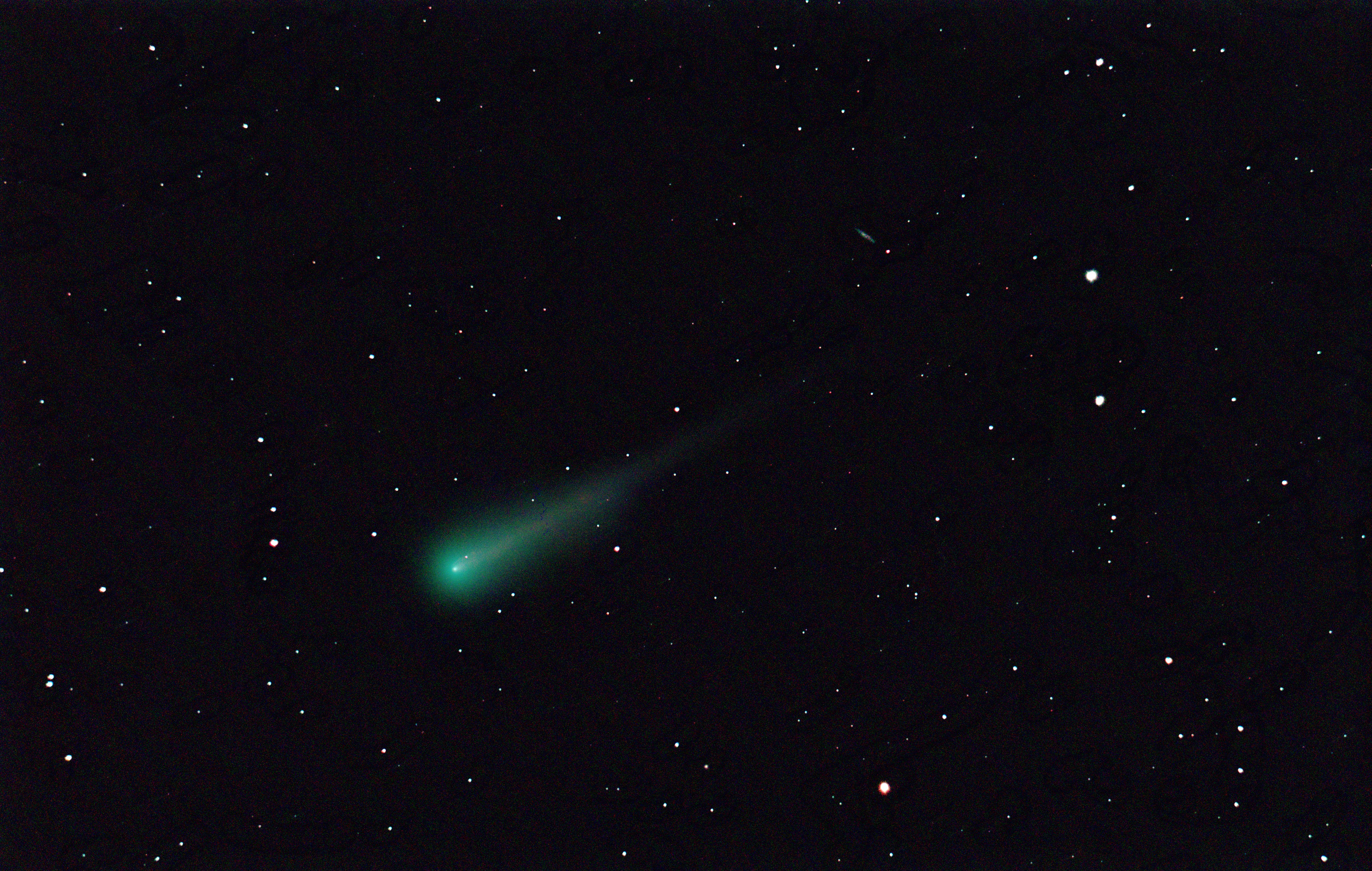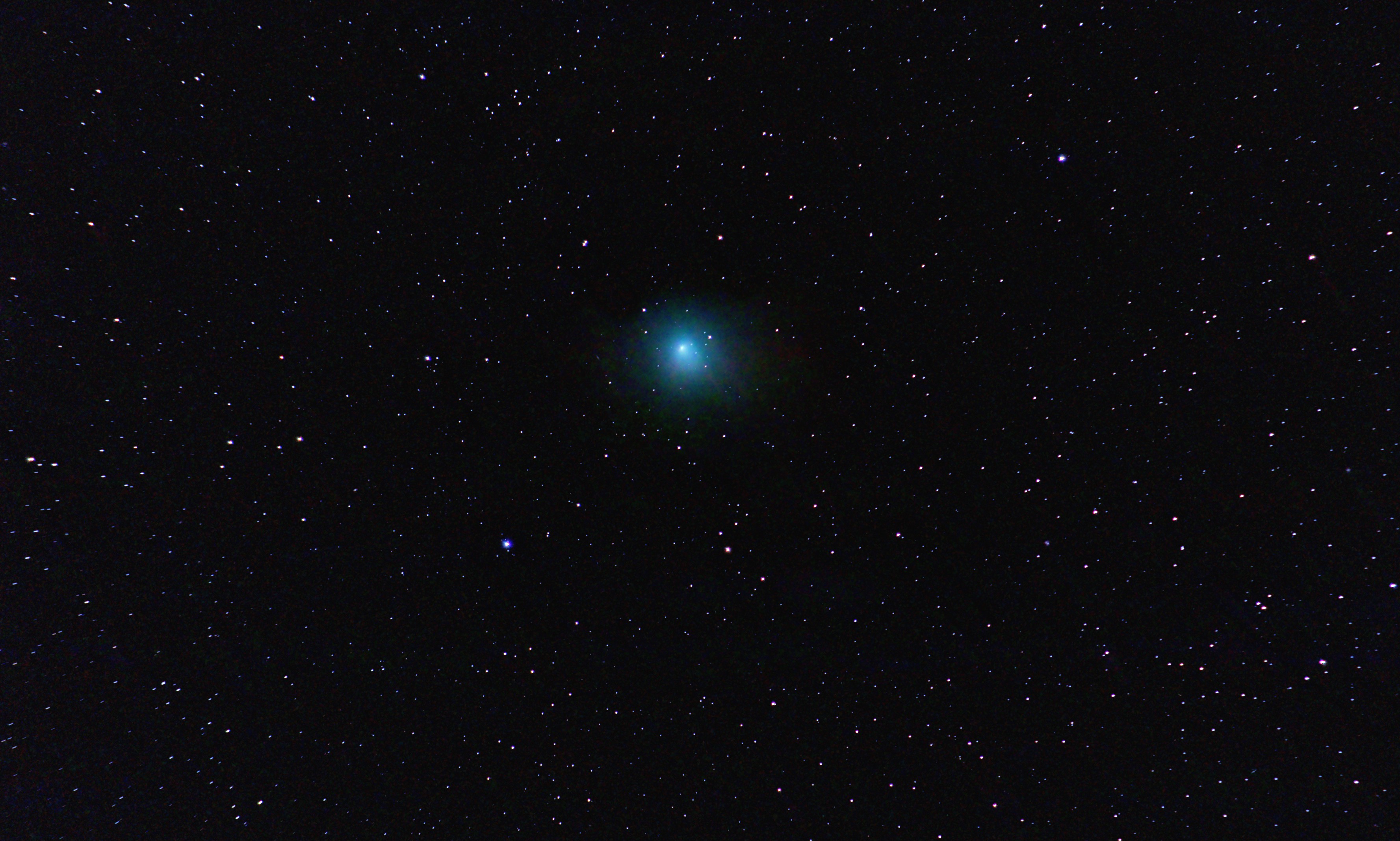 Dieser Komet zeigte bereits kurz nach der Entdeckung, dass er zu den helleren gehören würde. Hier im Bild, vor seiner größten Annäherung an die Erde, hat er eine Helligkeit von 2m. Damit ist er unter guten Bedingungen mit bloßem Auge als Komet erkennbar. Mit einem Fernglas werden bereits Einzelheiten sichtbar. Dennoch ist er bei leichter Lichtverschmutzung mit bloßem Auge nur noch gerade so erkennbar.