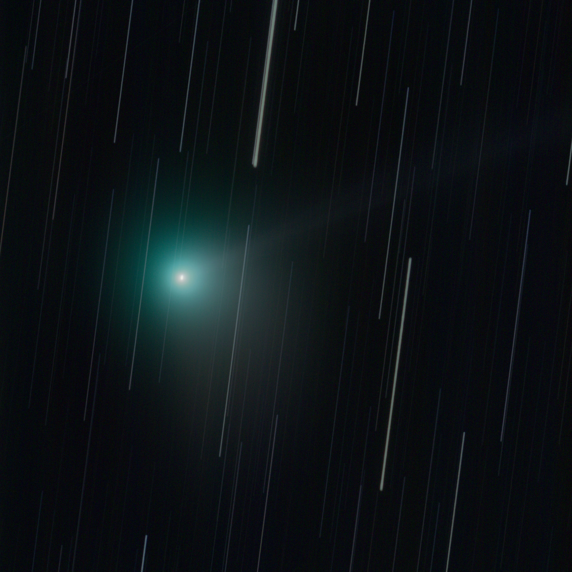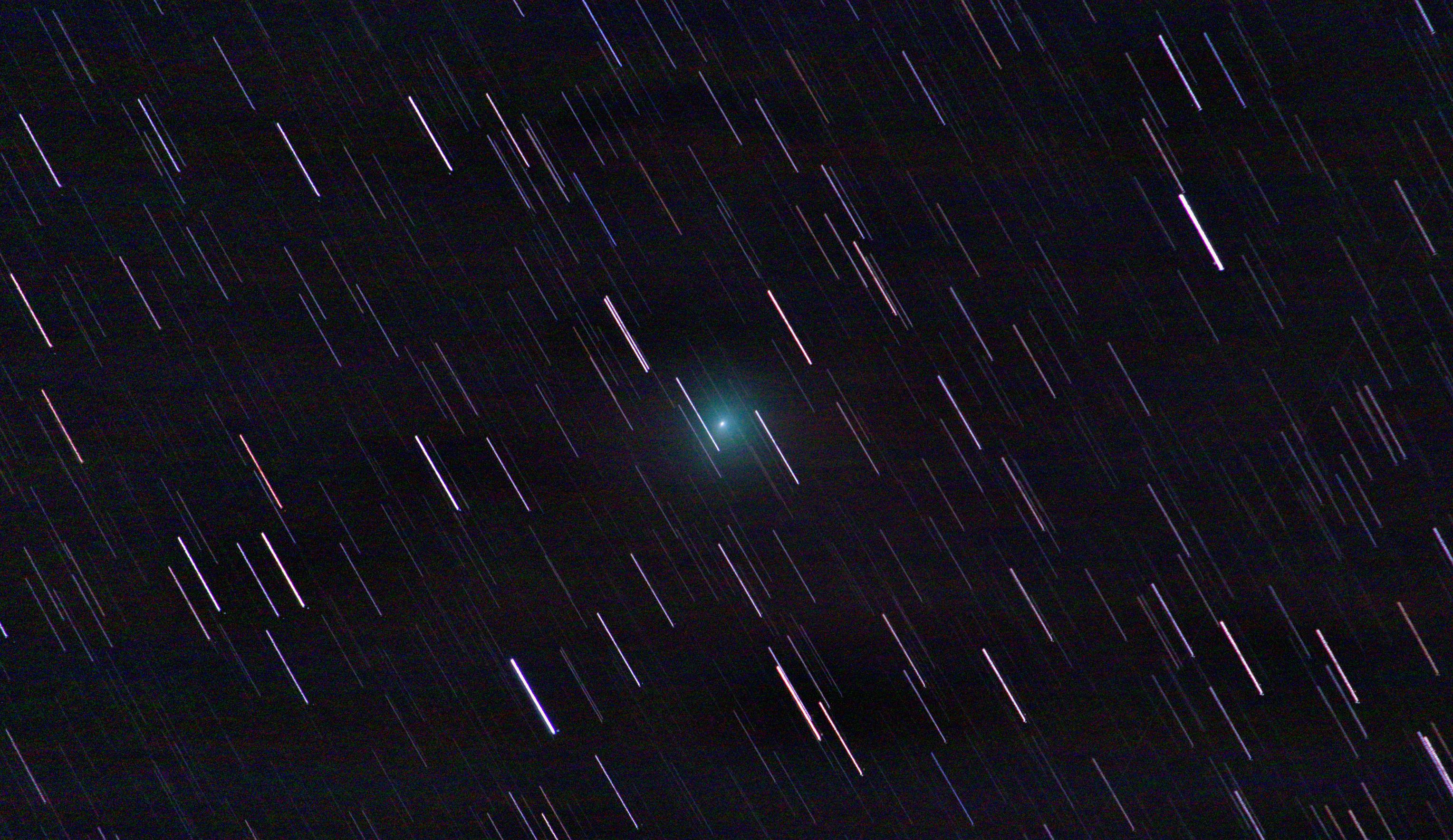 Ich führte Testaufnahmen mit dem Teleobjektiv 250mm in Kombination dem Nano Sky-Tracker durch. Dabei wählte ich diesen Kometen als eines der Testobjekte aus. Das Ergebnis entspricht etwa meinen Erwartungen.