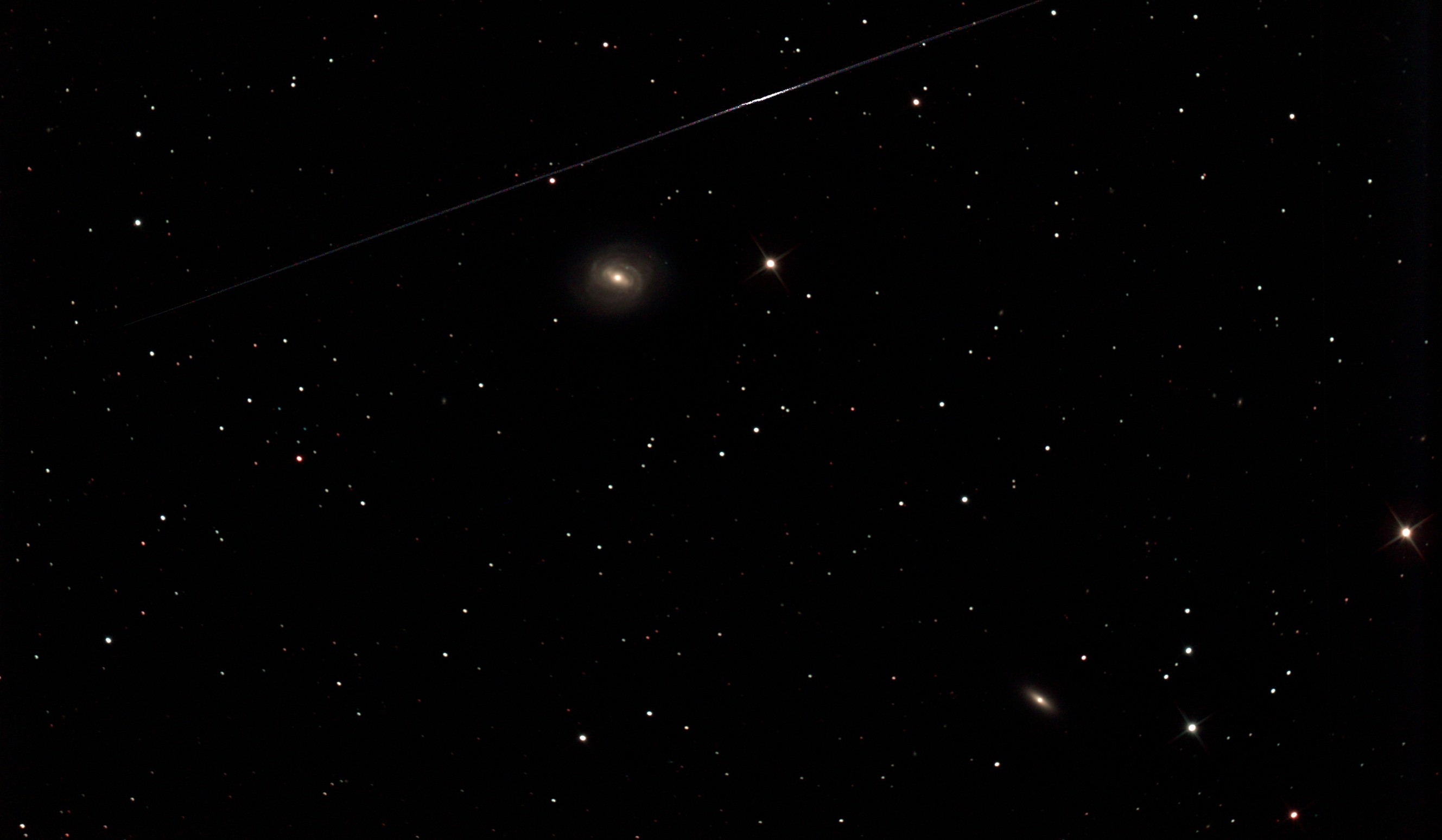der Aufnahme der Galaxie M 58 flog wieder zufällig ein winziger Meteor durch