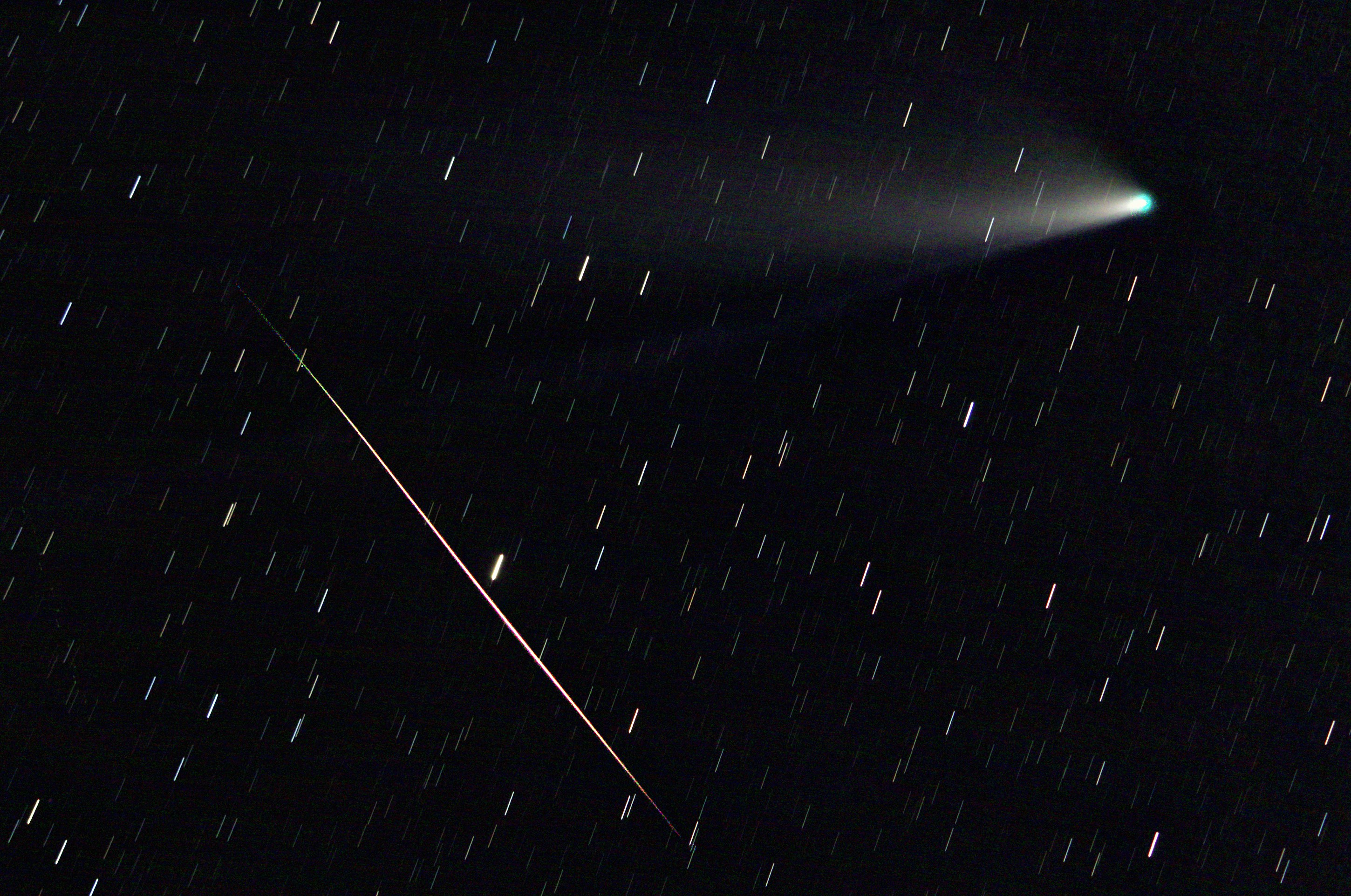 hellerer Meteor flog während der Aufnahme des Kometen C/2020 F3 (NEOWISE) durch